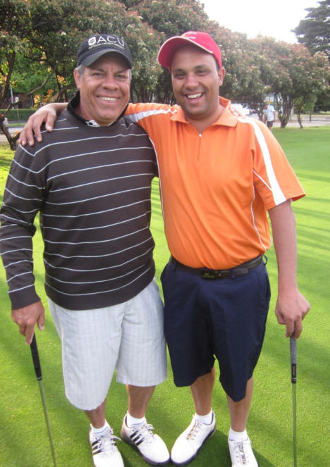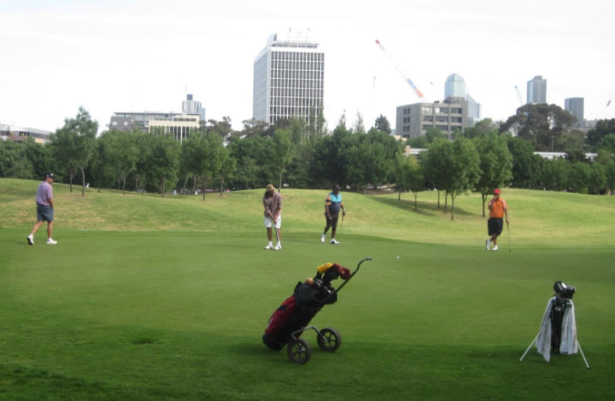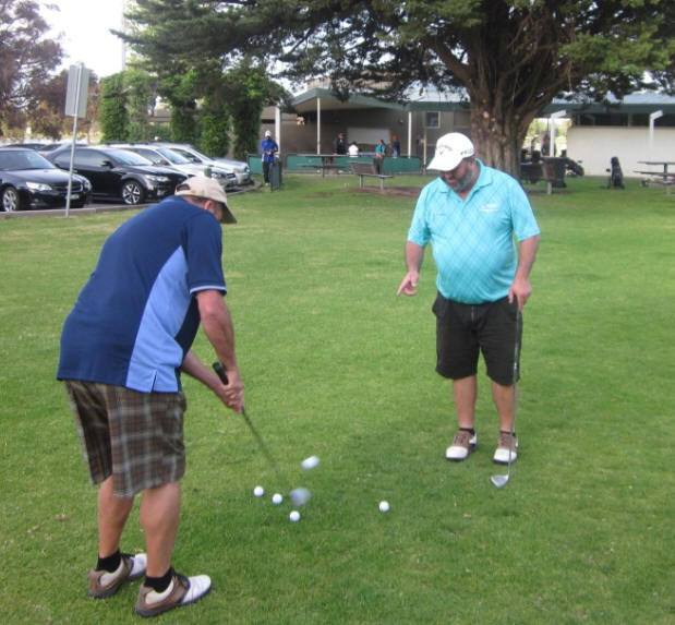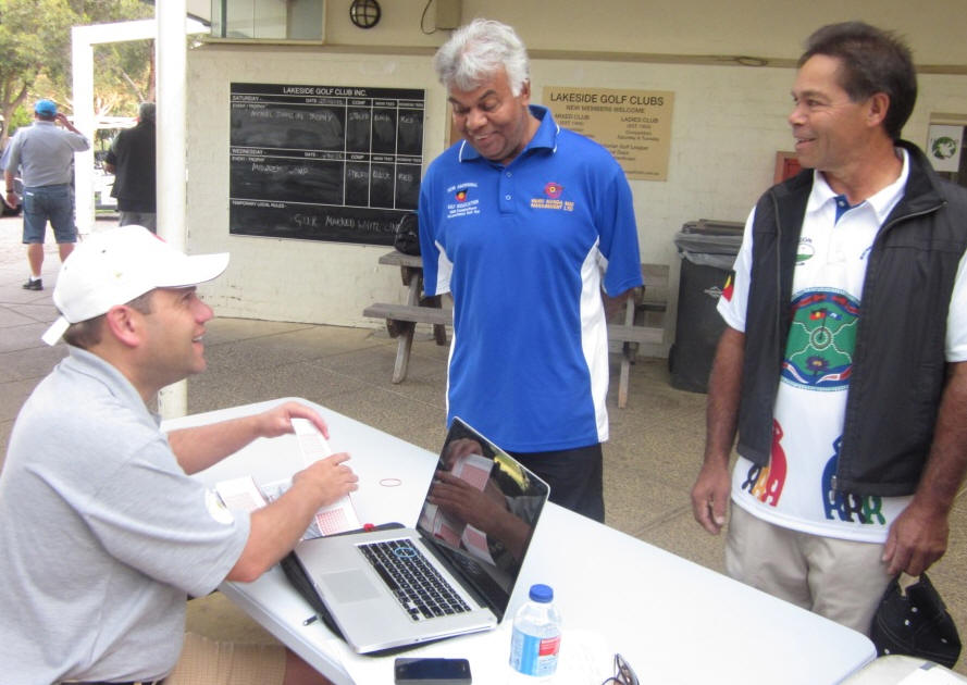 Luke Isaacs registering Eugene Warrior and Jack Watson | Brian Dennison pleased with his official handicap | Nick Abraham, Clem Rodney and Roger Hayden before the round (when it was cool) | Elgar Harrison | David McCrae putting on the green of the tough 15th hole with Rob Butorac, Rusty Butler and Michael Bell observing | Ben Hollis, who won last year | Aaron Clarke practising chips | Shane Nichols practising chips, brother Rob supervising | William Sevallos of the NT - but note IGAV shirt! | Chris Bush, Peter Narkle, Allan Rousell and Gary Stewart | Scott Ridgeway | Addi Butorac | Russell Amatto and Michael Bell | Glenda Marshall | Len Jackson, Larry Jackson and Barry Moran |